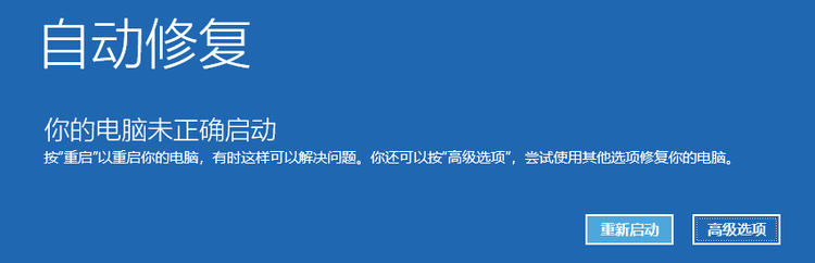 2. 第3次系统启动时会出现“正在准备自动修复”的字样