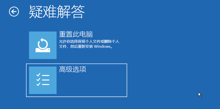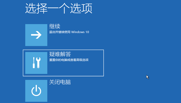4. 此时进入WinRE恢复环境选择“疑难解答”