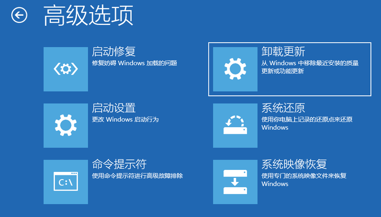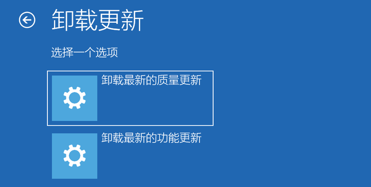 在设备上安装特定更新后,可能会发生某些蓝屏错误.如果更新后出现蓝屏错误,请尝试开机进入WinRE环境卸载最近的更新来修复错误