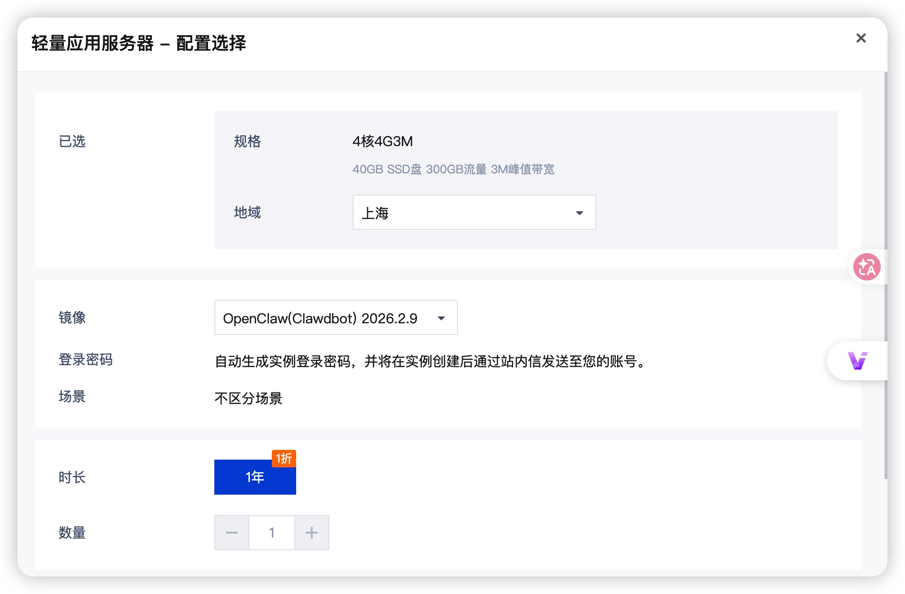 访问如下链接?,选择 OpenClaw 应用镜像一键购买并启动实例。