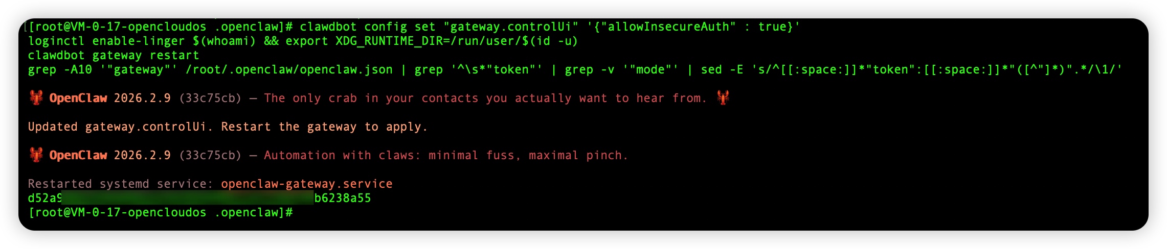 clawdbot config set "gateway.controlUi" '{"allowInsecureAuth" : true}'